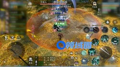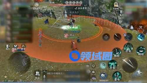2、何道人二技能【斩云破浪】会以自身为半径内目标施加伤害以及击飞效果,并且对所有目标释加一次延迟爆发的环形区域携带伤害,被命中的玩家会叠加一层风伤效果。这个技能同样分为两段,第一段我们直接翻滚出圈,紧接着队伍里的五个人散开,这样可以避免大家吃到叠加的伤害。