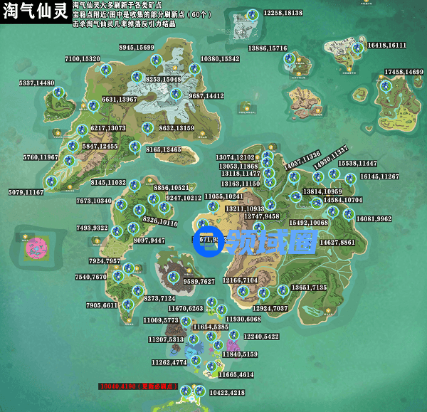 4、不知道最新的淘气仙灵必刷位置,可以参考上图,这是目前最新的点位,希望可以帮到大家。