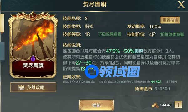 主要的输出技能,圆桌武士每回合稳定对敌方两个随机单位进行单体高额伤害,且在命中嘲讽状态目标时高概率为我方副将施加抵御效果。