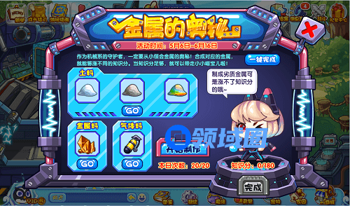 洛克王国金属的奥秘需要收集五种材料制作物品,活动期间每天有20次的制作机会,游戏宝小编带来洛克王国金属的奥秘活动攻略,一起来看看吧。