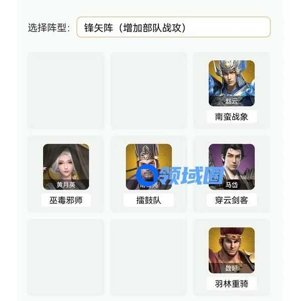 武将兵种搭配赵云(南蛮战象)马岱(穿云剑客)魏延(羽林重骑)诸葛亮(擂鼓队)黄月英(巫毒邪师)