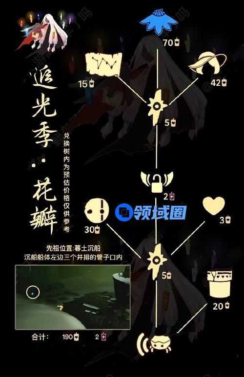 3、全部兑换完毕需要190个蜡烛和2个升华蜡烛,玩家可以参考上图的光遇螃蟹叫先祖兑换图,这也是2022最新的兑换图了,希望可以帮到大家。