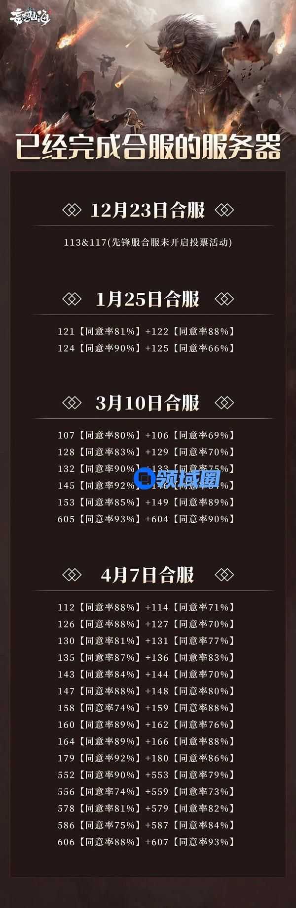 3.此外已经完成合服投票,已于4月27日起分批进行合服的服务器有: