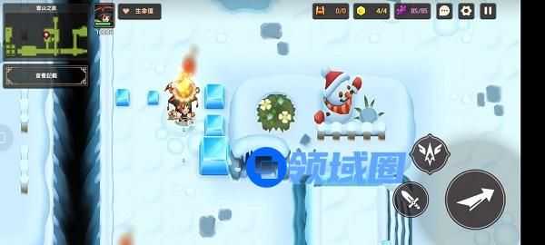 拿到火盆后往下走,举着火盆靠近冰块融化冰块