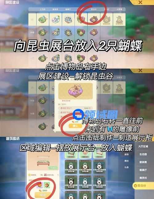 2、点击博物岛右手边,展区建设一解锁昆虫谷。
