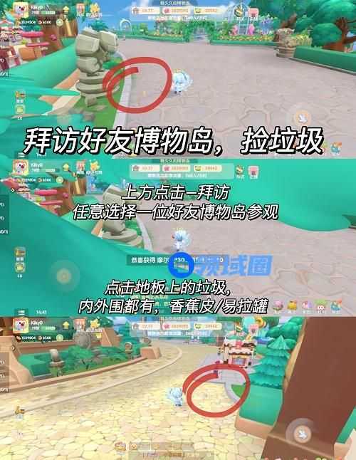 1、拜访好友博物岛,捡垃圾。