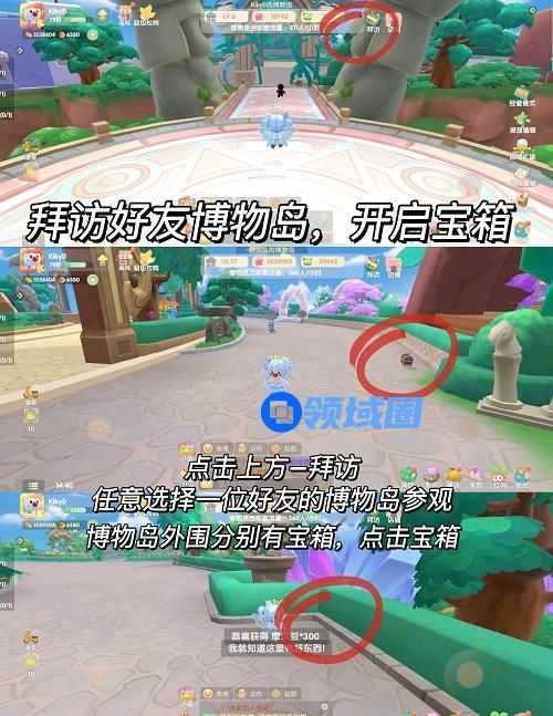 2、点击上方-拜访—任意选择一位好友的博物岛参观—点击外围的宝箱。