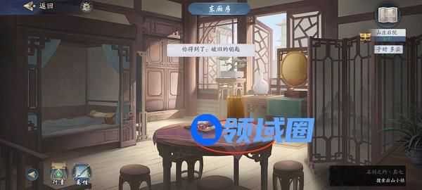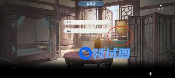 9、进入东厢房,点击妆台,获取后山大门钥匙: