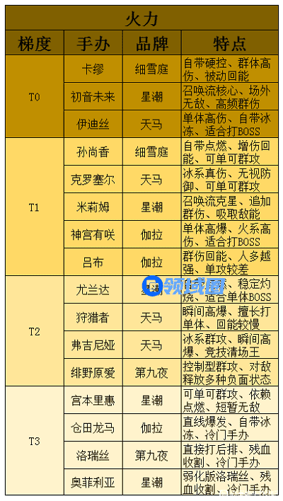1、以上就是2022最新的高能手办团强度排行了,玩家可以参考一下。