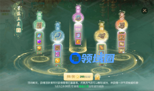 ②每消耗200星蕴值,可在星蕴五灵活动界面点亮1个灵气团,获得星蕴之灵与各类大奖。