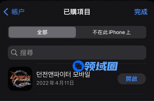 2.第二步,如果手机里有dnf手游韩服的,卸载游戏,用买来的id重新下载,确保你的App Store已购项目里有游戏。因为只能用下载游戏的id来充值游戏。
