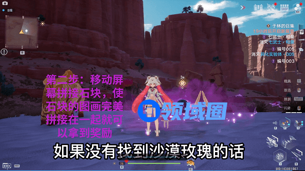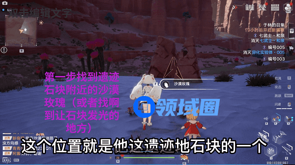 1.在面对遗迹石块时,我们需要找到一个特定的位置,那就是沙漠玫瑰的所在地。