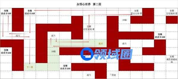 1、永恒心世界第二层中有9个宝箱,散落在地图的不同地方,玩家可以根据上图的路线走。