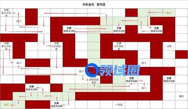 1、环形监牢第四层的地图比较大,探索起来比较费时间,玩家可以按照上图的路线走。