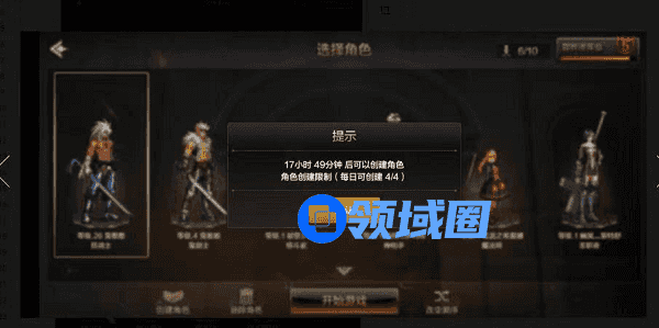 1.角色创建每天可以创建4个,达到上限后游戏中会有提示,限制于每日凌晨6点刷新。