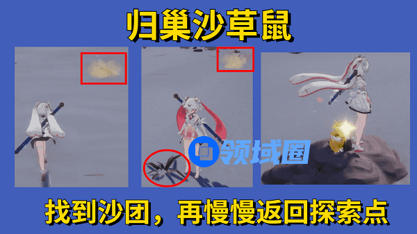 2.现在还不能看到沙草鼠的样子,只是一推沙子。此时,我们带着沙团缓慢回到探索点就可以啦。