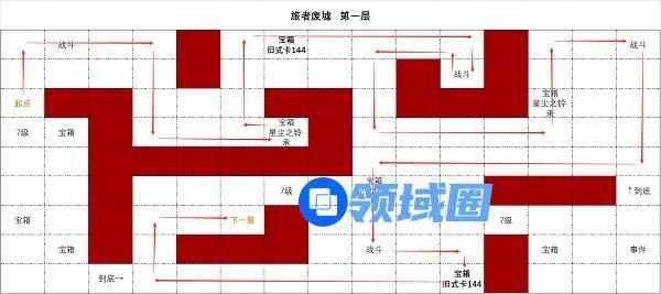2、首次探索︰在探索等级为0首次探索时,并不需要完成度100%,请按照首次探索路线走,丐版格子地图则按着红色箭头走,从入口走到出口,即可解锁下一个地图。