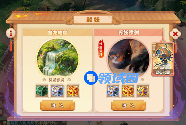 4、点击封妖后,分为两种模式「鱼龙地宫」「万妖深渊(困难)」。
