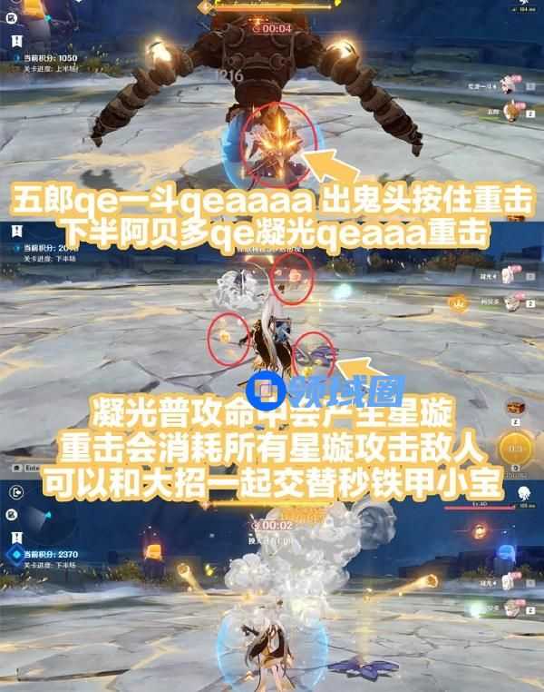 1、五郎qe一斗,qeaaaa出鬼头按住重击,下半阿贝多qe凝光qeaaa重击。