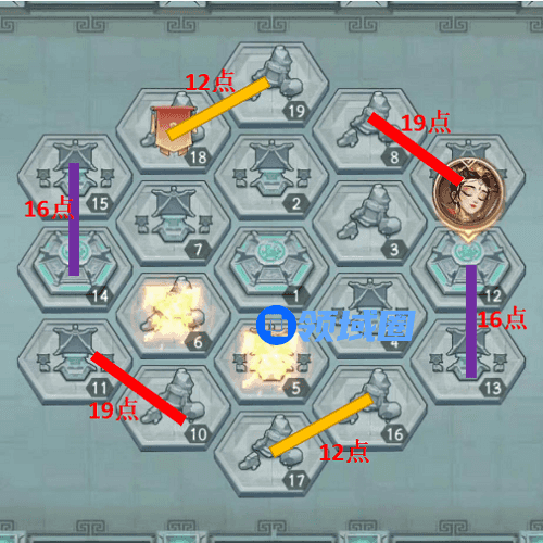 5、区域探索:区域包含:祭坛>石亭>石碑,越高级的区域探索遇到的守卫或宝箱的概率越高,每次探索随机遇到守卫事件或宝箱事件或玩家事件。