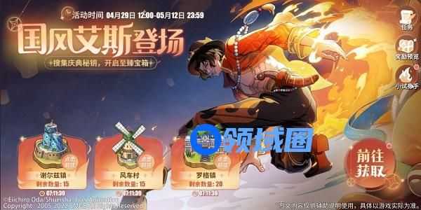 -在活动中,船长们可以开启「庆典宝箱」获得随机道具奖励,开启「至臻钥匙」有机会获得典藏角色「国风艾斯」伙伴碎片。