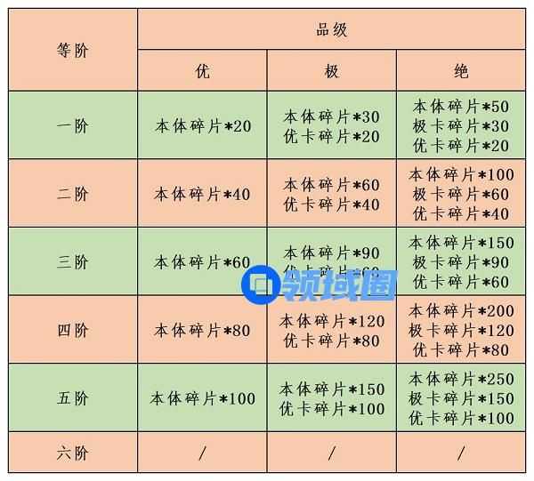极品绘图升阶需要本体碎片+优卡碎片,升满需要1+15张本体+15张优卡