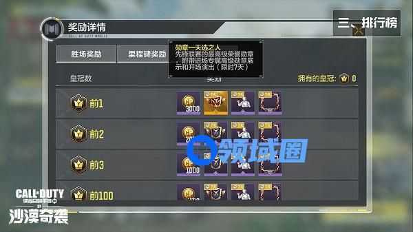 根据获得的情报,皇冠数量决定了战士们的排名先后。排行榜上的战士能够获得称号、开场展示动作等奖励,彰显自己的能力。