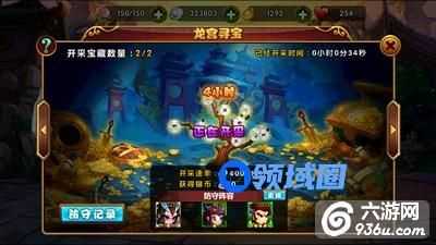 龙宫宝藏通过搜寻,会搜到银币、强化石和元宝,需要神仙防守开采。开采可以同时开始两个,需要不同的神仙防守。神仙达到六个,就可以进可攻退可守了,更多资源随便拿咯