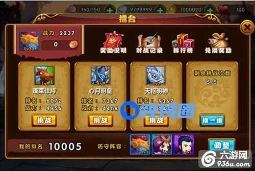 4、挑战者获得新的更高等级排名会获得元宝及擂台币奖励;