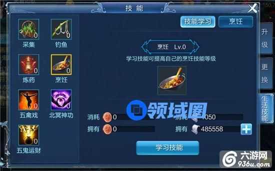 生活技能面板用于学习生活技能,并查看当前的技能等级与描述。(详情请参见生活技能系统的说明)