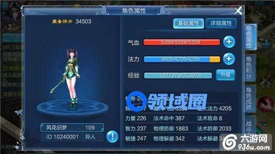 角色界面用于展示玩家当前角色的各项信息,包括角色属性、各项活动积分、成就(暂未开放)以及玩家战斗力。