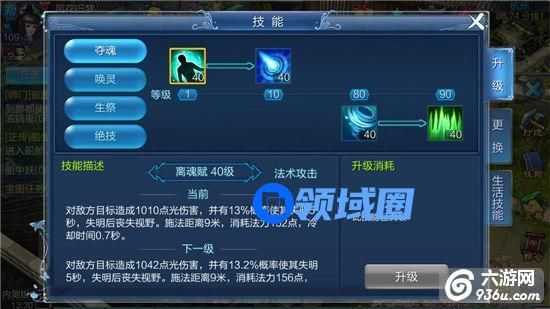 在技能升级界面中,可以查看技能详细描述以及升级所需的消耗。达到条件,点击“升级”按钮,即可将该技能升级。