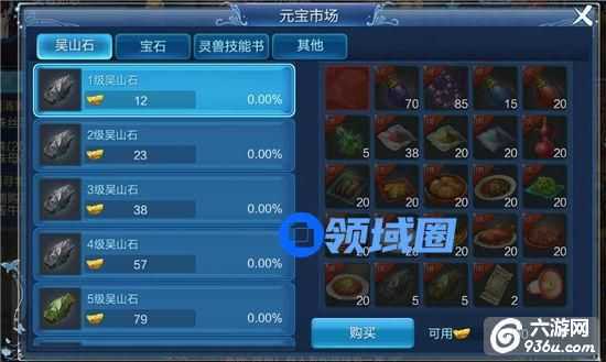 市场界面可打开元宝市场,用元宝购买各种稀有道具,如吴山石、各级宝石、灵兽技能书等,购买的道具默认绑定。你也可以将身上的部分道具按市价出售给元宝市场换取元宝。