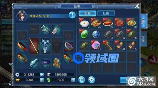 所有游戏内获得的道具和装备,均会显示在包裹中。