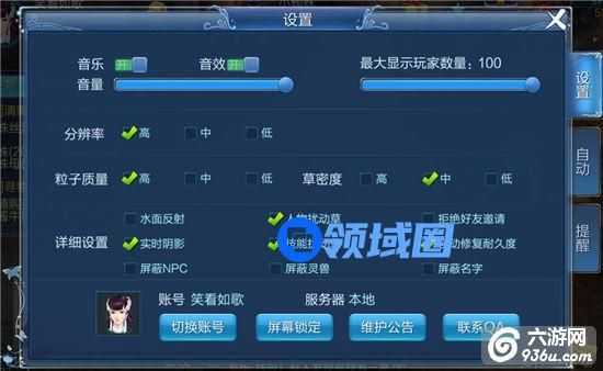 在这里,可以对游戏内各项参数进行设置,也可以查看维护公告或切换账号等。