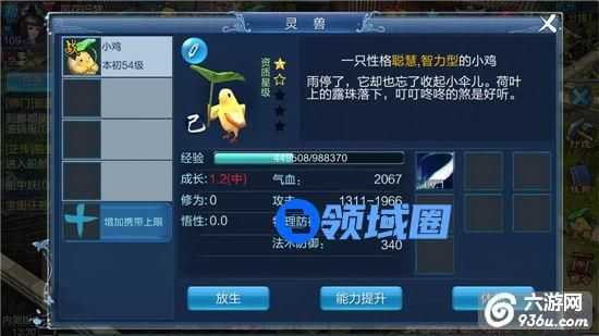 灵兽界面中,可以查看你当前获得的灵兽,也可以对它们的能力进行培养提升哦!