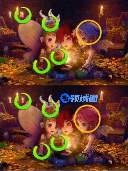 6、按照上图的标记就可以找到五处不同的位置了,以上就是梦幻西游网页版童趣一夏火眼金睛5.28攻略了,希望可以帮到大家。