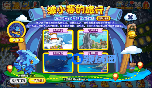 6、每完成一出打卡就会增加一点游玩进度,当游玩进度达到12点,就可以领取一只:波小赛。本活动仅限VIP用户参与。