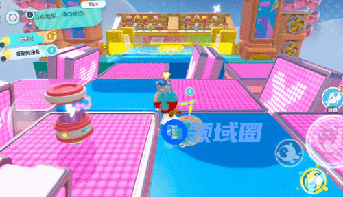 3、那么在没有沟通的情况下怎么办呢?在后面的蛋仔跟着前面的蛋仔走就好,在前面走的正常发挥就行。因为队友掉落后会瞬移到另一个队友头上,所以我们不用太惧怕跑得快把队友拖掉,然后队友再把自己拖掉的情况。一般除了旋转齿轮、风扇等需要谨慎跳跃以外,其它一些机关都是可以直接冲的。建议大家轮流激活“滚蛋”模式,即可快速通过大部分机关。