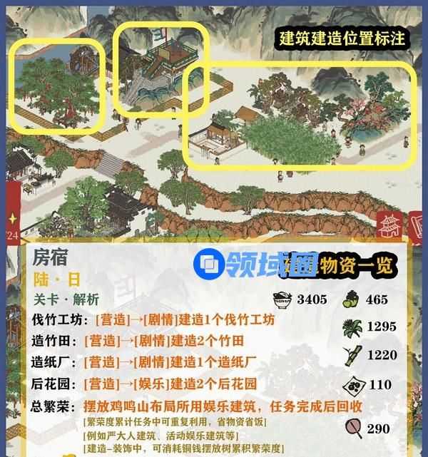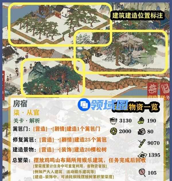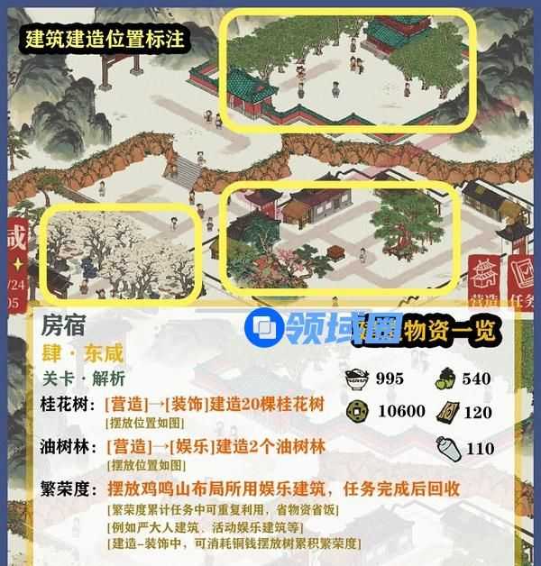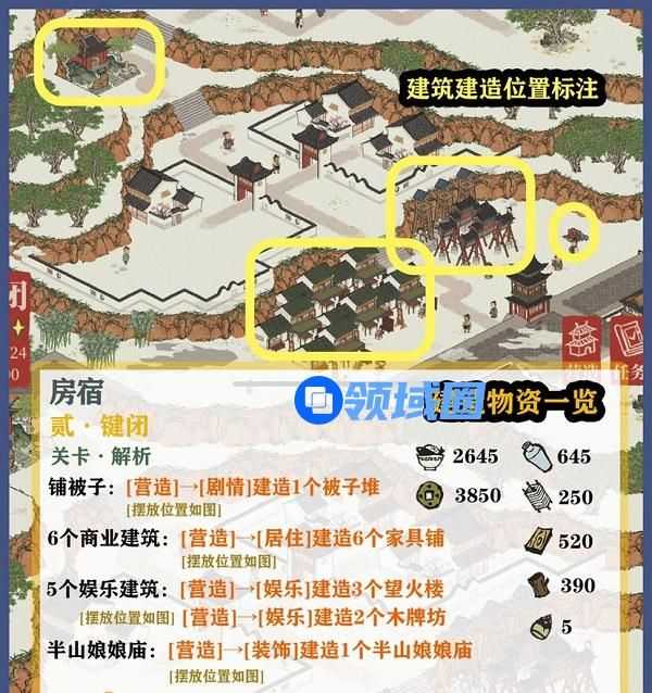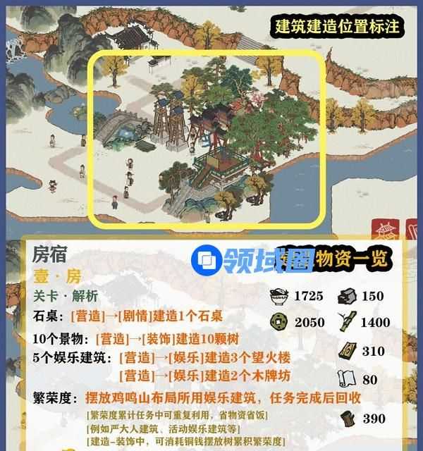 关卡中需要繁荣度累计可利用鸡鸣山布局所用的娱乐建筑摆放在关卡中,待任务完成亦可回收利用