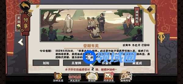 2.正确答案为陈霸先,玩家们选择第三项即可获得问答奖励。
