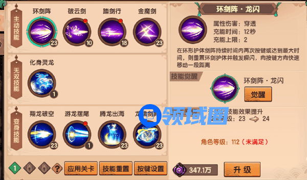 一技能:环剑阵原装/逆鳞/龙闪:满