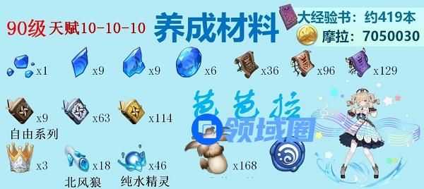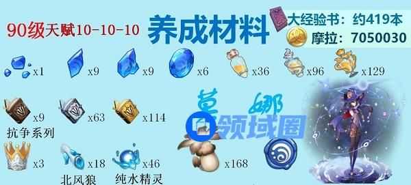 莫娜是一名以辅助见长的水系五星角色,其突破需要抗争系列天赋书、花蜜、北风之环等材料。