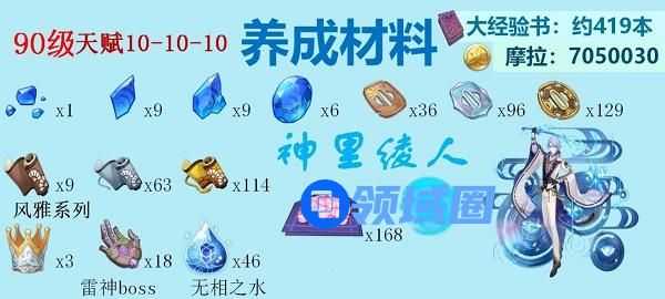 神里绫人是一位周期输出型角色,需要刀镡、绯樱绣球、风雅系列天赋书、无相之水掉落的排异之露等突破材料。