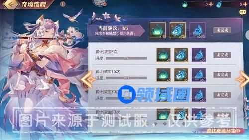 当小将军们累计探宝次数达到指定目标,即可解锁奇境馈赠奖励,获得稀有活动代币「奇境宝玉」、「奇境灵气」与将魂精华。奇境馈赠目标一共分为5轮,完成每轮所有探宝目标,还可以额外获得一份丰富馈赠。