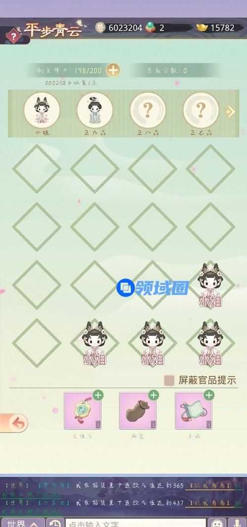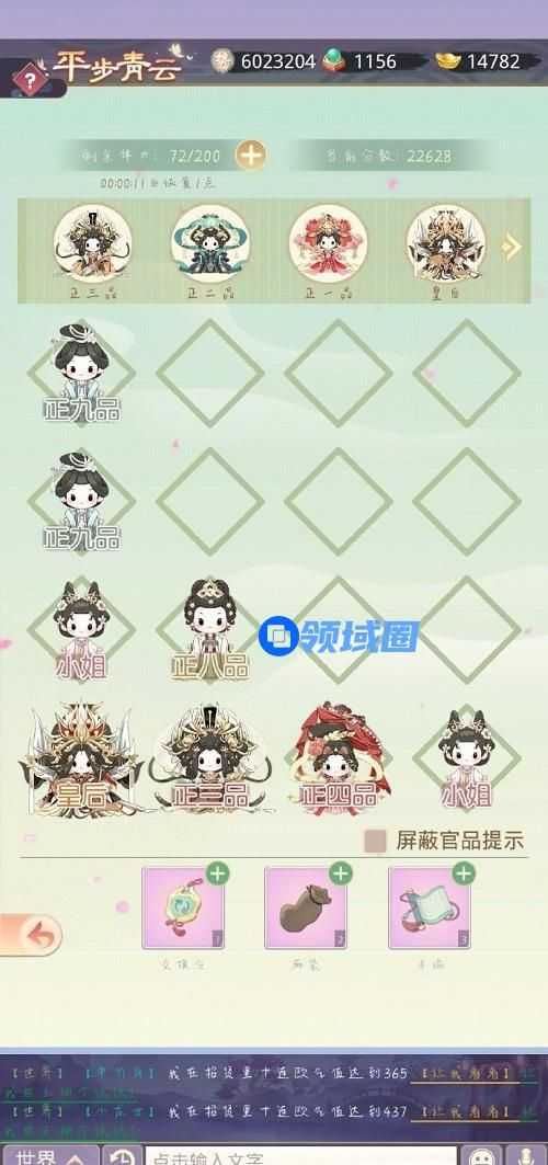 1、等级是小姐–正九–正八–正七–正六–正五–正四–正三–正二–正一–皇后。