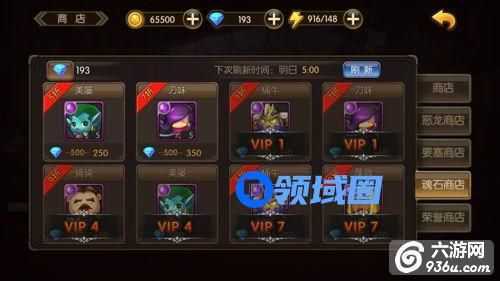 魂石商店:解锁高级VIP可以购买更多魂石。所以地中海,教主,必须满。傻馒次选。这样无论输出控制,还是坦克的耐打程度都得到了保障,副本和竞技场中可以很好的完成冲刺排名,快速通关。