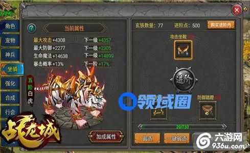 当坐骑三个部位的装备都锻造至当前阶段的最大等级时,便可以对坐骑进行进阶升级。进阶升级后的坐骑,除了属性和等级的提升外,坐骑的外观也会随之改变,变强后的坐骑外观上也会更加的威武霸气。
