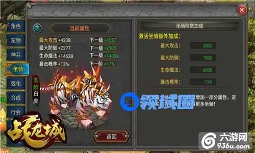 热血杀伐争霸,群战攻城猛兽来袭!《战龙城》手游继v4版本坐骑系统加入,辉煌龙城竞争便愈演愈烈。经过一段时间对坐骑的了解,大家的坐骑已经培养到什么程度了呢?下面为大家介绍下《战龙城》手游坐骑系统。
