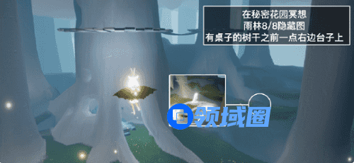 4、在秘密花园冥想:在雨林8/8隐藏图内,内有桌子的树干右边石头上的石碑前光圈处打坐并留言。